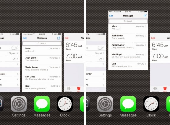However, this doesn’t close out of the app all the way. Pressing the Home button to exit out of an app doesn’t completely close it out; it still stays running in the background, that way it’s still up and running if you ever want to go back in. To completely close an app, double-click on the Home button. This will bring up iOS 7′s new multitasking tray.